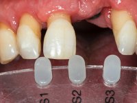Paciente do sexo masculino, com 55 anos de idade e fumador. Apresentou-se na consulta com um implante colocado na zona do dente 21. A arquitectura gengival mostrava-se planificada, com ausência de papilas interdentárias e uma deformidade gengival vertical na zona do implante. Os dentes apresentavam uma significativa exposição radicular.