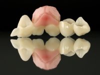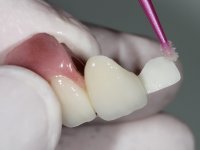 Na reabilitação estética de pacientes fissurados, primeiro devemos procurar estudar como restabelecer a simetria da arcada dentária e em seguida estudar como compensar a deformidade dos tecidos moles mantendo essa mesma simetria Nesse sentido a prótese provisória realizada em laboratório seguiu já essa abordagem. Primeiro procurou-se a simetria da arcada, com a confecção de dentes provisórios parecidos com os homólogos naturais e depois foi incluído um componente acrílico com tonalidade gengival com o objectivo de reabilitar a deformidade na zona da fenda, fazendo a compensação. Foi incluído um reforço metálico na provisória e os preparos no modelo foram minimamente invasivos e orientados pelo médico dentista. O modelo de trabalho foi obtido através de uma impressão utilizando uma técnica de dupla mistura.No laboratório, foi utilizada a tecnologia de CAD-CAM para a confecção de uma infra-estrutura em zircónio. Na ponte provisória, nós e a paciente notamos a necessidade de procurar uma maior simetria na forma e dimensões dos dentes a reabilitar em relação aos homólogos do 2º quadrante. Nesse sentido foi utilizado um efeito “tipo espelho” no desenho CAD da infra-estrutura, que permitiu mimetizar na peça protética a forma e dimensão dos dentes naturais homólogos. O desenho da infra-estrutura também incluiu uma aleta em zircónio que recobriria a superfície palatina não preparada do dente 2.1. A aleta serviria como um apoio adicional e simultaneamente, evitaria no futuro a abertura de um diastema entre os incisivos centrais O levantamento da cor dos dentes e dos tecidos moles foi feito no consultório pelo ceramista. Após avaliação do trabalho final em boca e aprovação pela paciente, a ponte foi colada. A colagem foi optimizada com a adição de um “liner de zircónio” no seu interior bem como na superfície interna da aleta. O tratamento mostrou-se esteticamente aceitável e funcionalmente capaz, contribuindo fortemente para a melhoria da auto-estima da paciente.