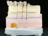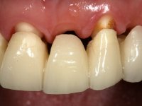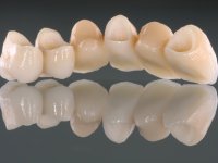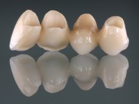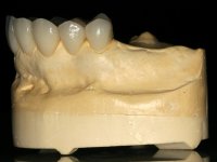 • Ponte de 4 elementos com infra - estrutura em Zr, recoberta a cerâmica, com os dentes 1.5/1.3 e 1.2 como pilares e o dente 1.4 como pôntico.