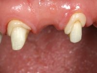 • Colocação de dois implantes, um no local do dente 1.6 e outro no local do dente 2.6. Reabilitação dos implantes com duas coroas aparafusadas.