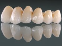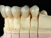 • Ponte de 6 elementos com infra – estrutura em Zr, recoberta a cerâmica, com os dentes 1.1/2.2/2.4/ e 2.5 como pilares e os dentes 2.1 e 2.3 como pônticos.