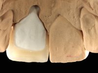 Foi proposta a realização de uma coroa total em cerâmica feldespática no dente 1.1 e uma faceta feldespática tipo “No Prep” no dente 2.1. Após o acidente sofrido foi proposta a colocação de uma faceta feldespática de inserção vertical no dente 2.1.