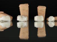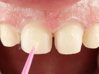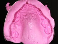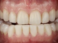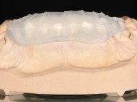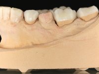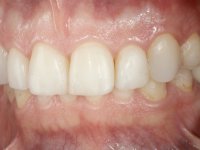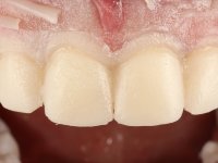 Paciente do sexo masculino, com 36 anos, não fumador. Fez tratamento ortodôntico e reabilitou esteticamente o sector anterior com restaurações em resina composta. As restaurações apresentavam um aumento vertical médio de 2 mm em relação o bordo incisal. Apresentavam-se esteticamente satisfatórias, mas com algumas fraturas incisais. O dente 1.5 apresentava um processo apical e o dente 2.6 apresentava tratamento endodôntico e uma lesão endo-periodontal. No maxilar inferior no local do dente 3.5 apresentava um implante com uma coroa aparafusada e o dente 8.5 ainda estava presente em boca com agenesia do dente 4.5. O paciente apresentava uma ligeira perda da dimensão vertical da oclusão provavelmente associada a um visível desgaste das superfícies oclusais. O periodonto era espesso e apresentava uma excelente higiene oral.