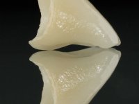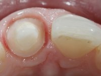 Depois da realização de uma pré-impressão em silicone foi iniciado o preparo dentário. Ao realizar-se o preparo para uma faceta verificou-se que esta estava presente em profundidade. Foram colocados Guias de esmalte de uma Guia personalizada com vaselina por cima da mancha para verificar se era possível eliminá-la com uma faceta. Verificou-se que não. Tomei a decisão de avançar para uma restauração de revestimento total, uma coroa. Imediatamente a seguir ao preparo dentário para a coroa foi feita uma restauração provisória em resina composta pelo mét. de pré impressão. O provisório foi utilizado para comprimir uma pasta de caolino e realizar o afastamento gengival. Foi feita uma impressão utilizando a técnica de dupla mistura. No laboratório foi realizada uma coroa com infraestrutura de Zr revestida a cerâmica. Em boca, por razões estéticas foi necessário corrigir a superfície distal com discos e pontas de borracha adequadas. Aprovado o trabalho pela paciente foi realizada a cimentação definitiva com ionómero de vidro reforçado com resina.