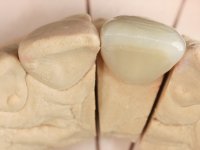 Foi proposto á paciente a realização de uma faceta de cerâmica feldespática no sentido de resolver o problema estético de forma minimamente invasiva. Apesar do dente apresentar tratamento endodôntico, era meu propósito preservar estrutura dentária. Foi no entanto comunicado que se a alteração do esmalte fosse muito profunda, poderíamos ter que realizar uma coroa de revestimento total para poder “mascarar” o problema estético com uma estrutura mais opaca.