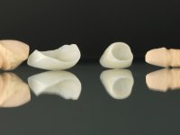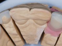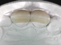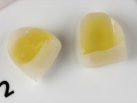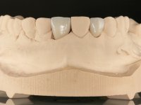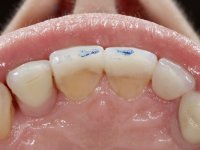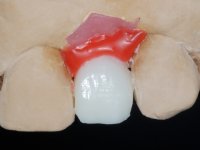 • Confeção e colagem de uma nova faceta feldspática para substituir a fraturada. A nova faceta deverá incluir maior área dentária inter-proximal distal do dente 2.1.