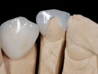 • Reabilitação do espigão falso coto fundido com uma coroa com infra-estrutura em Zr revestida a cerâmica.