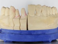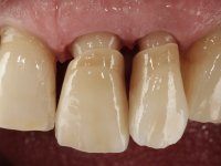 O paciente não gostava da ponte que tinha colocada nos dentes 2.1 e 2.2. Não gostava particularmente das “margens em metal”. A transição da ponte para a superfície radicular também mostrava um bordo metálico fino que “raspava” o lábio superior.