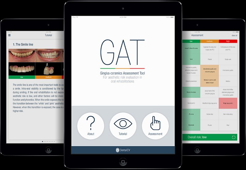 Esta aplicação apresenta-se como uma ferramenta informática, que integra um sistema de apoio à decisão clínica, destinado a identificar claramente os factores de risco que podem afectar o resultado final de uma reabilitação protética. Gingiva-ceramics Assessment Tool oferece uma excelente usabilidade num interface depurado, de forma a proporcionar uma aprendizagem simples, direta e eficaz, com pré-requisitos virtualmente nulos. Esta aplicação destina-se a orientar a prática clínica na fase de avaliação, que precede a reabilitação com prótese fixa e componente cerâmica de tonalidade gengival.
