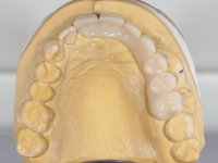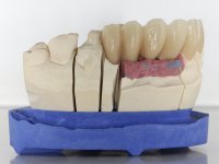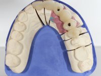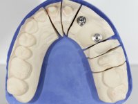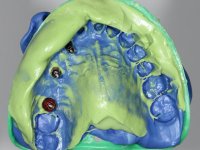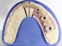 The patient was proposed to undergo a fixed oral rehabilitation consisting of a 2-element bridge over teeth 11 and 21 and a 5-element bridge over 3 implants that would be placed in the location of teeth 22, 24 and 26. The prosthetic structures would have an infrastructure in Zr coated with ceramic and the bridge over the implants would be screwed. The indicated extraction of teeth 25 and 26 and placement of an implant in the 26 site would imply surgery to fill the maxillary sinus. As the patient showed interest in having fixed temporary rehabilitation during treatment, we divided the treatment into 6 phases to achieve this goal: 1- Placement of a temporary bridge over teeth 11,21,25 and 26. With tooth extraction 24. 2- Placement of 2 implants in the location of teeth 22 and 24. 3- Placement of a temporary 6-element bridge over teeth 11 and 21 and over the implants. 4- Carrying out surgery to fill the maxillary sinus. 5 – Placement of the implant in the location of tooth 26 and in the area where the filling of the maxillary sinus was made. 6 – Placement of the definitive work.