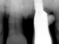 The angulation of the dental implant did not allow for a screwed prosthesis. Thus, an anatomical abutment was used and the crown margin was milled 1mm infragingival, to allow the removal of the cement. The prosthetic component included a ceramic part emulating the crown and the root of the adjacent teeth, and a gingival part to compensate the soft tissue deficiency. Periodontal surgery to regenerate soft tissue in a vertical deficiency is complex and unpredictable, hence this prosthetic option. Although unconventional, this rehabilitation was well accepted by the patient, easy to perform and proved to be aesthetically satisfying and stable over time.