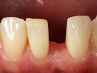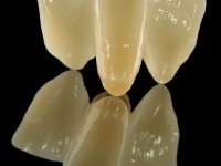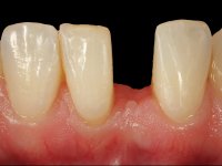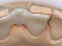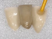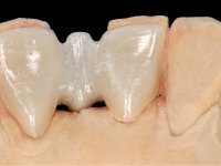 In the dental lab, a Maryland bridge with a zirconia framework veneered with a feldspathic ceramic was built. The wings internal surface also had a very thin coating of a zirconia adhesive to allow its bonding to the abutments enamel. This Maryland bridge tried to join the mechanical strength of the framework, to the bonding of the ceramic to the enamel, and to the aesthetics’ of the zirconia’s veneering with a feldspathic ceramic.