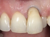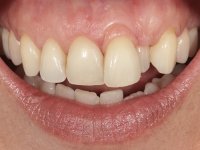 Patient was unhappy about "a protruding front tooth with exposed root.”