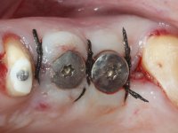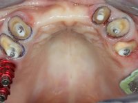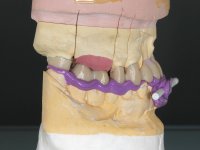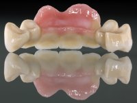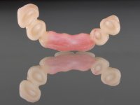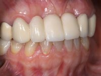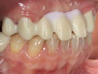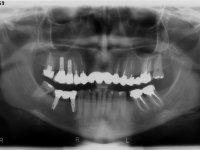 In view of the clinical situation, oral rehabilitation was proposed to improve the aesthetic appearance, but also to solve the lack of posterior teeth, seeking a functional and aesthetic rehabilitation. The plan included replacing the metal-ceramic bridge by a bridge with Zr infrastructure coated with coronary and gingival ceramics. The edentulous area of the first quadrant would be rehabilitated with 2 implants and a bridge of two elements. It was intended with this treatment plan, to recover the vertical dimension of the occlusion and to reshape the dental anatomy, thus creating a more natural aesthetic appearance.