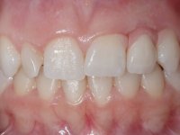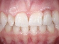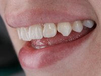 Female patient, 24 years of age, non-smoker. The clinical situation resulted from an orthodontic treatment performed with the intention of resolving a problem of unilateral agenesis of the left lateral incisor. After orthodontic correction, an implant was placed at the site of tooth 2.2. During the period of osseointegration the patient used a removable orthodontic appliance with a prosthetic tooth. Upon assessment of the situation, I registered the following aesthetic conditions: