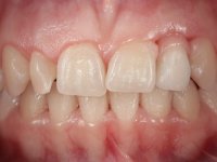 1. The cervical level of the teeth 1.3.1.2 and 1.1 are at a more incisal level than the teeth 2.1 and 2.3.