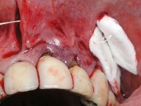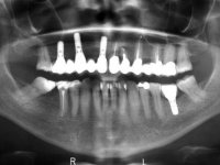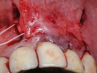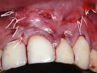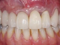 Maxilla: periodontal plastic surgery to increase gingiva thickness and reduces root exposures. Ceramic FPD in the 1st and 2nd quadrants.