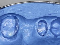 In a first phase, a 2-element bridge in Zr was proposed. in teeth 17 and 16. When 4 years later, an abscess appeared in tooth 26, the patient was proposed to remove the bridge, remove the intra-radicular posts and perform a retreatment of the endodontic treatments and put the bridge back. It was possible to do what we set out to do, but 1 year after this procedure, with the appearance of a new abscess, the extraction of tooth 26 was proposed. With this extraction, the patient was proposed to make a bridge in Zr. of 3 elements, with teeth 27 and 25 as abutments and 26 as a pontic.