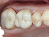 Teeth 17 and 16 were prepared for the fabrication of a 2-element Zr bridge. The impression was performed with a double mixing technique and a monolithic bridge in Zr was made in the laboratory. 4 years later, an abscess appeared in the apical area of tooth 26. It was decided to remove the bridge, remove the intra-radicular posts and retract the endodontic treatments of teeth 17 and 16. The removal of the bridge was carried out by making two cervical cavities. in the palatal area of the bridge and with a microluxator, disinsertion movements were performed. The intra-radicular posts were removed using fine drills and an ultrasound tip. The bridge was provisionally cemented and the patient was referred to a fellow endodontist for endodontic retreatment. After the retreatment, the intraradicular posts were placed again and the bridge was definitively cemented. One year later, a new abscess appears, possibly related to a root fracture. The bridge was sectioned between tooth 27 and 26 and tooth 26 was extracted and the crown of 27 was provisionally cemented. 3 months later, teeth 27 and 25 were prepared and a temporary bridge was made in dual polymerization resin. Then, an impression was made using the double mixing technique and a 3-element bridge in Zr was made in the laboratory. It was permanently cemented in the mouth with resin-reinforced glass ionomer cement.