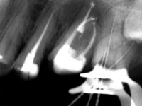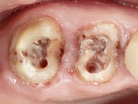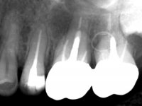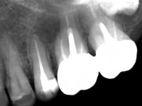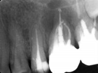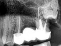 Initially, the patient wanted to “strengthen” teeth 17 and 16, which had endodontic treatments and extensive restorations. In a second phase and with a bridge already placed over teeth 17 and 16, the patient complained of an abscess in the apical area of 16.