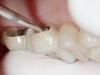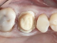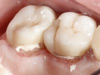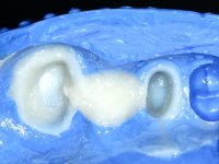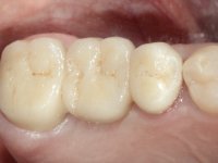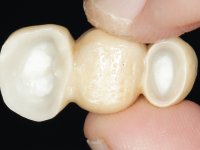Teeth 17 and 16 were prepared for the fabrication of a 2-element Zr bridge. The impression was performed with a double mixing technique and a monolithic bridge in Zr was made in the laboratory. 4 years later, an abscess appeared in the apical area of tooth 26. It was decided to remove the bridge, remove the intra-radicular posts and retract the endodontic treatments of teeth 17 and 16. The removal of the bridge was carried out by making two cervical cavities. in the palatal area of the bridge and with a microluxator, disinsertion movements were performed. The intra-radicular posts were removed using fine drills and an ultrasound tip. The bridge was provisionally cemented and the patient was referred to a fellow endodontist for endodontic retreatment. After the retreatment, the intraradicular posts were placed again and the bridge was definitively cemented. One year later, a new abscess appears, possibly related to a root fracture. The bridge was sectioned between tooth 27 and 26 and tooth 26 was extracted and the crown of 27 was provisionally cemented. 3 months later, teeth 27 and 25 were prepared and a temporary bridge was made in dual polymerization resin. Then, an impression was made using the double mixing technique and a 3-element bridge in Zr was made in the laboratory. It was permanently cemented in the mouth with resin-reinforced glass ionomer cement.