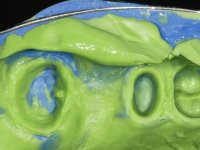 In a first phase, a 2-element bridge in Zr was proposed. in teeth 17 and 16. When 4 years later, an abscess appeared in tooth 26, the patient was proposed to remove the bridge, remove the intra-radicular posts and perform a retreatment of the endodontic treatments and put the bridge back. It was possible to do what we set out to do, but 1 year after this procedure, with the appearance of a new abscess, the extraction of tooth 26 was proposed. With this extraction, the patient was proposed to make a bridge in Zr. of 3 elements, with teeth 27 and 25 as abutments and 26 as a pontic.