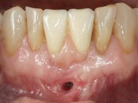 The patient came to the consultation saying that a “hole” had appeared in the gum area next to an implant. He did not report having had pain or any type of swelling.