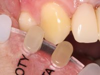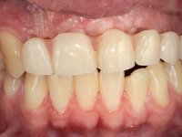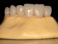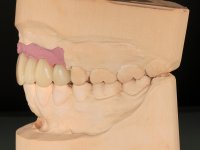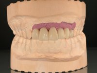 The diagnostic wax-up enclose the possibility to include, or not, gum-shade ceramics to rehabilitate the interdental papillae. This two possibilities were presented to the patient due to the bone regeneration unpredictability (in our opinion), mainly vertically.