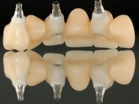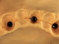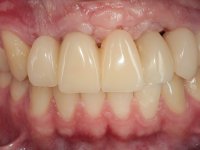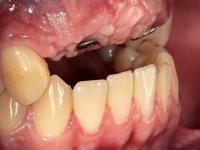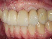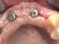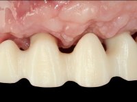 The bridge was finally placed with a progressive screwing to allow the tissue to accommodate the pressure of the pontics and the abutments emergency profiles.