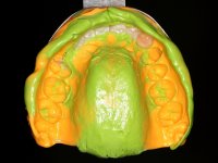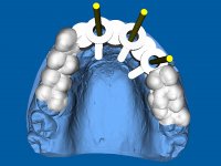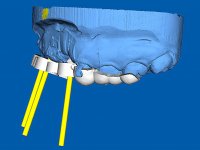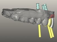 The wax-up allowed us to do a mock-up that worked also as a radiological template. The CT-scan was imported to an implant planning software where three dental implants were simulated, and a surgical guide developed.